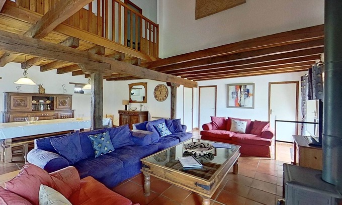 The exposed beams and the spacious mezzanine add a touch of authenticity and grandeur to our gîte.