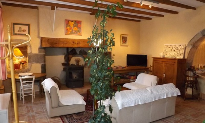 This gite has a garage, private land in the owner's enclosure and a covered terrace with garden furniture, barbecue and sun loungers. On the ground floor, spacious living room with fireplace equipped with a pellet stove (pellets provided free of charge), flat screen TV, DVD player and wifi internet access, fitted kitchen area, laundry room with toilet. On the 1st floor, 1 bedroom with 1 double bed and private bathroom with wc, 1 bedroom with 1 single bed, 1 bedroom with 2 single beds, shower room with wc, separate wc. Electric heating included. Prices all charges included.