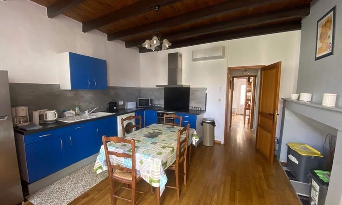 And end up discovering that after passing through the accommodation, you can enjoy an open-air terrace and eat quietly outside, out of sight and in complete tranquility. Thus La Papayette, nestled in the heart of the beautiful town of Auvillar, famous for its pottery market under the round hall, its renovated houses and its cobbled streets, offers you a holiday in its spacious, comfortable accommodation with its air conditioning which will not be missed to be appreciated. Come and enjoy this rural setting in a village... On the ground floor, the accommodation includes a kitchen (integrated elements oven, microwave, hob, refrigerator, freezer dishwasher, washing machine, table chairs), a living room (2 sofas, armchairs, coffee table, TV), giving access to an open-air patio with garden table and chairs, 2 deck chairs, barbecue. A bathroom with toilet. On the 1st floor, a mezzanine, serving 2 bedrooms, 1 of which has access to a bathroom with toilet and each with 1 double bed 140. Air-conditioned accommodation with wifi. Bed and household linen provided included in the price. Public parking lot in front of the house for parking. with search terminal for electric vehicle Property managed by a professional. Unless stated, services such as cleaning, bed linen, towels etc. are not included in the price of this rental. If pets are allowed (information in the advertisement), charges may be applicable. Only equipment mentioned in this advertisement are present. Equipment not mentioned are not considered to be present.