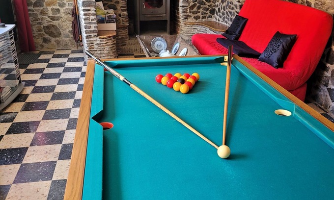 Enchanting local stone camp house, located in mountain media, equipped with a living room with billiard table, chimney with light proporcionada to improve your summer cottage, electric radiator in all the homes, Wi-Fi, a dormitory with a 140x190 bedroom, an individual bedroom foldable, comfortable, comfortable, comfortable, comfortable, fully equipped kitchen, horn, refrigerator, microwave, cafeterias and a terrace facing onto barbecue, tubs and private parking.