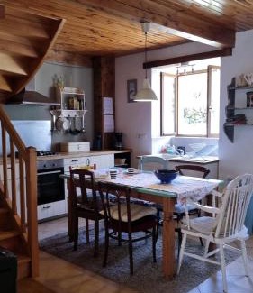 Food & DrinkTea/Coffee maker, Wine/ChampagneBathroomHairdryer, Body soap, Toilet paper, Toilet, Bathtub, Towels, Bathtub or shower, Shower, Bathrobe, Private bathroomMedia & TechnologyCD player, TV, Flat-screen TVGeneralIron, Heating, Hardwood or parquet floors, Fire extinguisher, Private entrance, Tile/Marble floor, Carbon monoxide detector, Trash cans, Smoke AlarmKitchenHigh chair, Refrigerator, Washing machine, Coffee machine, Cleaning products, Kitchen, Dining table, Wine glasses, Oven, KitchenwareLiving AreaSofa, Sitting area, FireplaceOutdoorsOutdoor dining area, Outdoor furniture, Terrace, PatioViewInner courtyard view, View, Garden viewServicesWake-up serviceBedroomChildrens' cribs, Linens, Wardrobe or closetAccessibilityUpper floors accessible by stairs onlyBuilding CharacteristicsSemi-detachedRoom AmenitiesDrying rack for clothing, Socket near the bed, Clothes rack, Non-feather pillowEntertainment & Family ServicesBooks, DVDs or music for children, Baby safety gates, Board games/puzzlesPool and SpaPlunge Pool, Pool coverLayoutWindowCleanliness & disinfectionHand sanitizer |