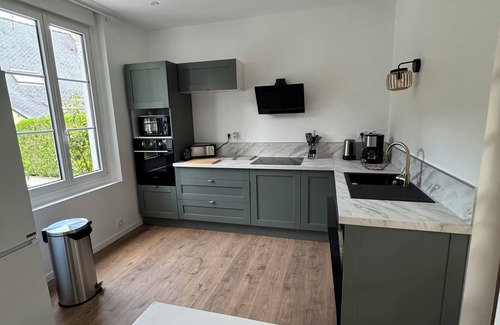 Gite de la Vigne, in the heart of nature is located in Bagnoles-de-l'Orne. Gite de la Vigne, in the heart of nature provides accommodation, featuring Wellness Facilities, Security/Safety, Fireplace/Heating, among other amenities. This House features Wellness Facilities, Security/Safety, Fireplace/Heating, to make your stay a comfortable one.