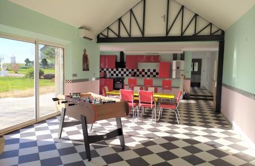 A recently renovated country house, GITE diner AMERICAIN offers accommodations in Clévilliers. This property offers access to a terrace, free private parking, and free Wifi. Chartres Train Station is 10 miles from the country house and Chartres Municipal Theater is 10 miles away. The air-conditioned country house consists of 3 bedrooms, a living room, a fully equipped kitchen with a dishwasher and a coffee machine, and 1 bathroom with a shower and a hair dryer. Guests can enjoy a meal on an outdoor dining area while overlooking the garden views. For added privacy, the accommodation features a private entrance. Outdoor play equipment is also available at the country house, while guests can also relax in the garden. Cathédrale de Chartres is 11 miles from GITE diner AMERICAIN, while Train station of Dreux is 16 miles away. Paris - Orly Airport is 56 miles from the property.