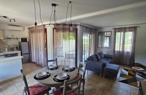 Offering inner courtyard views, Gite du Chêne Pardaillan in Pardaillan features accommodations and a garden. With garden views, this accommodation provides a balcony and a swimming pool. The apartment offers rooms with air conditioning, free private parking, and free Wifi. The apartment provides guests with a terrace, pool views, a seating area, a flat-screen TV, a fully equipped kitchen with an oven and a microwave, and a private bathroom with walk-in shower. A toaster, a fridge, and stovetop are also offered, as well as a coffee machine and a kettle. At the apartment complex, units come with bed linen and towels. Bergerac Train Station is 22 miles from Gite du Chêne Pardaillan, while Chateau des Vigiers Golf Course is 13 miles from the property. Bergerac Dordogne Périgord Airport is 21 miles away.