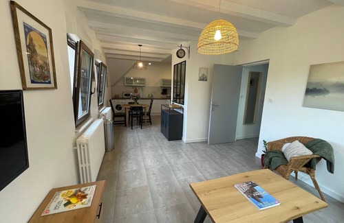Located on the first floor of a single-family house, this spacious accommodation offers a bright living area, with a friendly living room space, a dining area, and a fully equipped open kitchen: dishwasher, washing machine, filter coffee maker, espresso machine, kettle, toaster... everything is planned for a comfortable stay.
