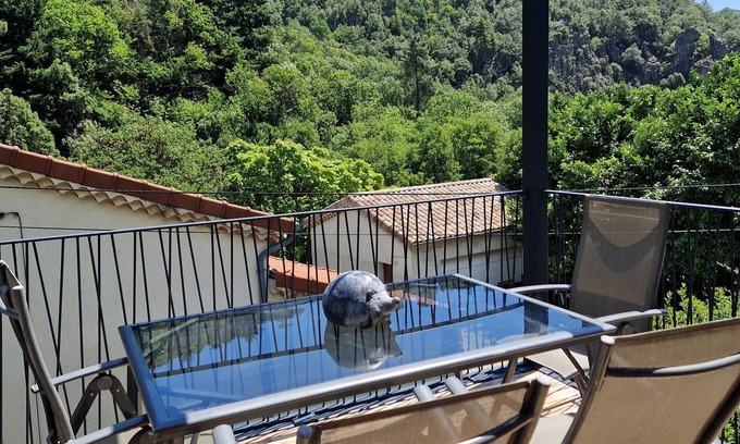 Located in Vallées-d'Antraigues-Asperjoc, this 2-bedroom, 1-bathroom apartment lets you experience it all. Fans of nature and the outdoors will love being within a 5-minute walk of Monts d'Ardèche Regional Nature Park and 9 minutes by car from Thermes de Vals-Les-Bains. If you'd like to explore the area, you can make the 25-minute drive to Devil's Bridge or the 15-minute drive to Château d'Aubenas.
