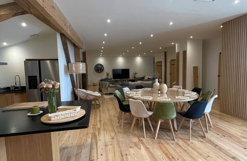 Located in Beguios, in the heart of the Basque Country, this high-quality 250 m² gîte can accommodate up to 12 people. The property features a spacious 100 m² living area, ideal for gathering as a group or family.