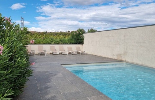 Gite Grenache, communal heatable and fenced pool, surrounded by vineyards | Cottage in Rieux-Minervois