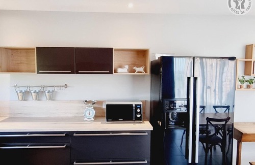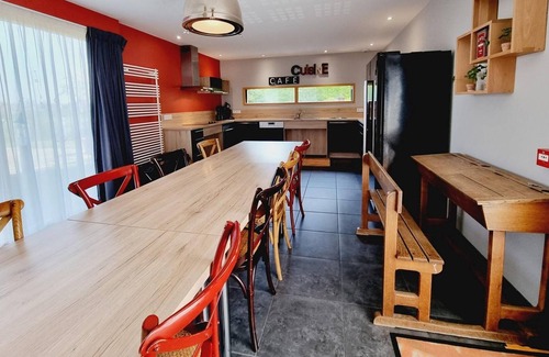Ground floor: Equipped kitchen, living room with table football, 140cm TV and Flemish games, WC. A PMR bedroom with a 140x200 bed. A PMR bathroom (Italian shower and WC).