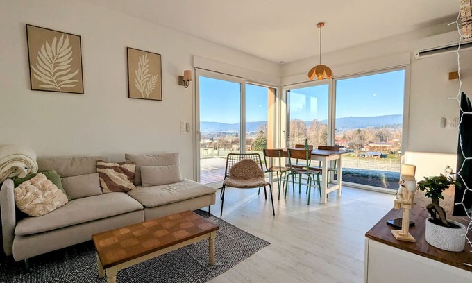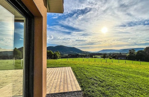 Maison Pâquerette, a peaceful and new accommodation, ideal for families. Located in the magnificent Vosges, just 25 minutes from the ski resorts, our cottage can comfortably accommodate 4 people. Enjoy a southern exposure, offering a breathtaking view of the valley and absolute tranquility. Explore the hiking trails through the enchanting landscapes of the Vosges. Come and recharge your batteries and spend unforgettable moments in this idyllic setting. (4400m2 plot) New and cozy house of 50m2 with a clear view of the valley.