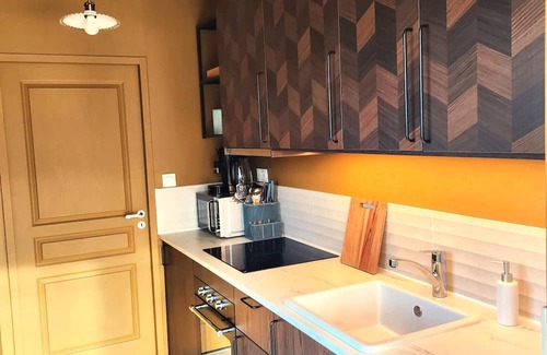 Equipped with all comforts with its small equipped kitchen area: 4 ceramic hobs, oven, microwave, coffee pod machine, kettle, toaster, 6-place dishwasher, refrigerator freezer compartment (total capacity of 107L), raclette machine and blender.