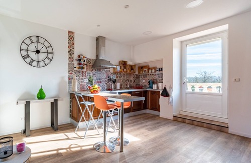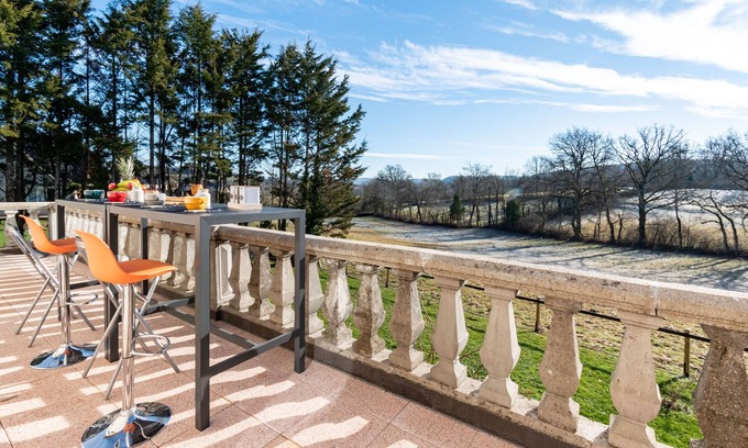 - Terrace of 36 m² facing south/east and furnished with a high dining table for 8 to 10 guests, as well as garden furniture. The terrace is the ideal place to enjoy breakfast with family or friends, with its uninterrupted view over the surrounding countryside!