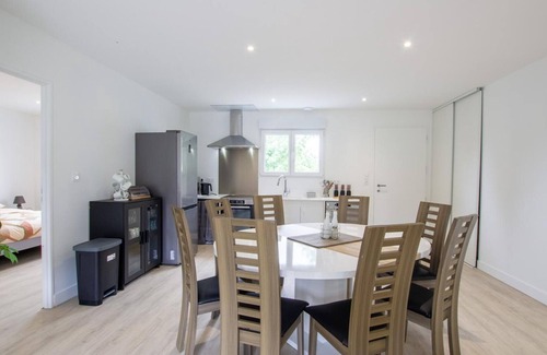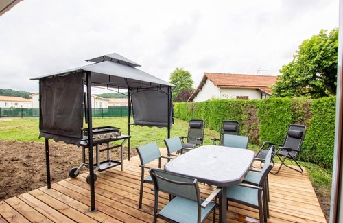 Detached house in a small, fully enclosed subdivision with no overlooked views and private, secure parking. On one level, this recently built accommodation (2023) offers all the comforts of a modern home. It has a large living room with kitchenette, lounge and living room, all air-conditioned. Three bedrooms are each equipped with a 160x200 bed. A shower room with WC and a washing machine complete the set. The wooden terrace is furnished with a gas plancha, six-seater garden furniture and three deckchairs. The house is air-conditioned in the living room and the air conditioning can be distributed in the bedrooms. From this house located in the heart of the Périgord Pourpre, you can visit countless sites: the castles of Monbazillac, Biron, Bridoire, the bastides of Issigeac, Eymet, Beaumont-du-Périgord, Monpazier... and spend pleasant moments strolling through the markets of Périgueux and Bergerac. You can enjoy the city of Saint-Émilion and its world-famous vineyards, located 1 hour away by car.