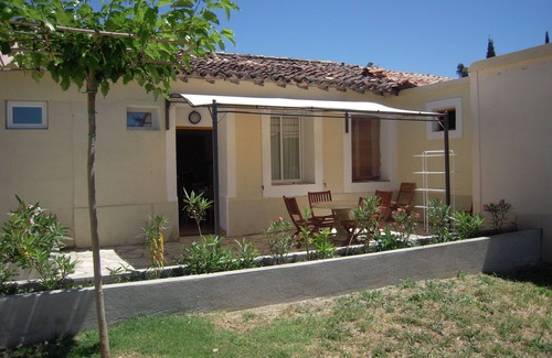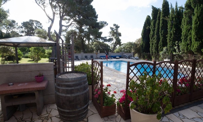 The cottage has a view of the estate's vineyards. very close to the cottage: a landscaped park with tall trees and a petanque court. On the edge of the park, you will find, in summer, a 10x5 outdoor swimming pool to share, with a large terrace equipped with deckchairs and umbrellas.