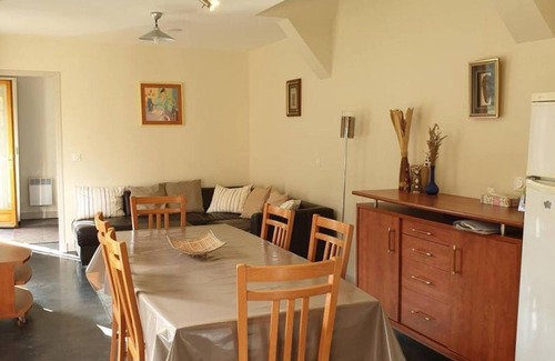 A fully equipped kitchen (multi-function oven, microwave, dishwasher, fridge with freezer compartment, washing machine) open to the living room / dining room (82cm flat screen TV + DVD player), 1 bedroom (2 beds 90 * 200), another bedroom located at the end (2 beds 90 * 200 twinned in 180 * 190), a bathroom with bathtub and shower 90x90 (hairdryer, heated towel rail), separate toilet.