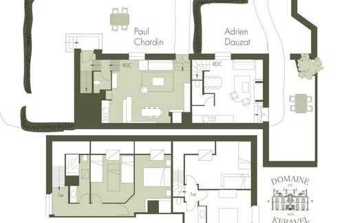 Gite Paul Chardin 7 Pers (semi-detached) composed on the ground floor of a large living room with its sofa bed, a chimney and a kitchen . The upper floor is composed of 2 bedrooms whose a parental one and one with 2 simple and 1 trundle beds and a bathroom.Orientation East with a small private garden. Area of 70 sq m.