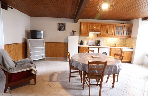 This farm cottage benefits from enclosed grounds of 100 m² with garden furniture and barbecue. On the ground floor, living room with pellet stove (pellets provided), flat screen TV and internet access, fitted kitchen area. On the 1st floor, 1 bedroom with 1 double bed and balcony, 1 bedroom with 2 single beds, bathroom with toilet. Beds made on arrival. Electric heating according to consumption. Prices include all charges in high and very high seasons. Animal supplement: €20/week.