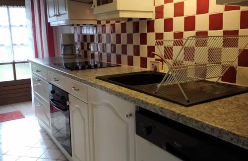 On the ground floor, spacious living room with flat screen TV, DVD player, fireplace with insert (free wood), fully equipped kitchen area opening onto the south-facing terrace, 2 bedrooms with 1 double bed, bathroom, toilet independent. Upstairs, small relaxation area on the landing, 1 large bedroom with 2 single beds, bathroom with toilet. Electric heating according to consumption.