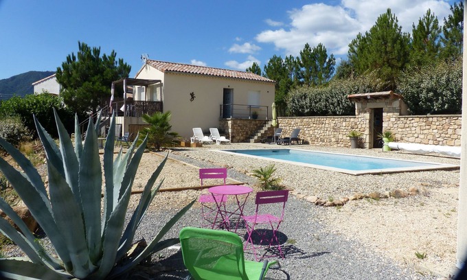 Cottage 4 to 5 people located in southern Ardèche. Southern climate assured. The cottage is quietly located with private pool and breathtaking views of the Chassezac Valley. The place is ideal to relax and forget his daily worries. Petanque.