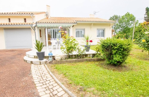 This pleasant single-storey house offers a fully equipped kitchen and a dining area open to the large living room with sofa, armchairs, television and Canal +. You will have a first sleeping area with two bedrooms each composed of a 140x190 bed. Near the bedrooms is a bathroom with Italian shower and double sink as well as separate toilets. A second sleeping area is available to you in the other wing of the house, with a bedroom composed of a 140x190 bed and a bathroom with a toilet and a shower.