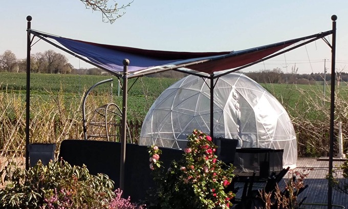 Terrace with garden furniture, barbecue, terrace heating (gas heating) and jacuzzi covered under a bubble, open from mid-April to the beginning of October.