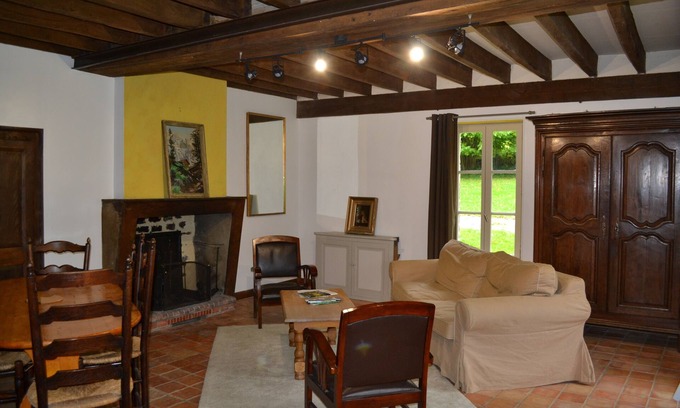 This south-facing house is ideal for a couple and two children. It is possible to organize a good barbecue or a vigil by the fire, to play good games of football, badminton or volleyball in its magnificent park.