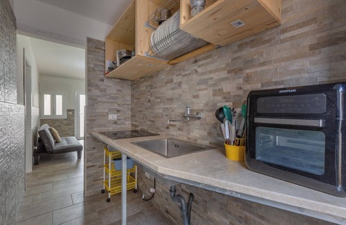Giusy House is a simple and essential vacation apartment in Frigole, on the Lecce seaside. The solution offers up to 6 beds and is located inside Villaggio Racar, about 700 meters from the beaches.