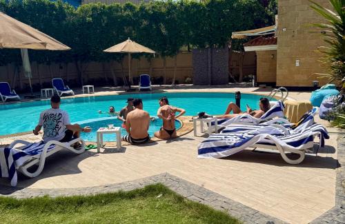 Giza Palace Pyramids View features an outdoor swimming pool, garden, a shared lounge and terrace in Cairo. This 3-star hotel offers room service, an ATM and free WiFi. The property provides a concierge service, a tour desk and currency exchange for guests. The hotel will provide guests with air-conditioned rooms offering a desk, an electric tea pot, a fridge, a microwave, a safety deposit box, a flat-screen TV and a private bathroom with a shower. All guest rooms feature a closet. A buffet, à la carte or continental breakfast is available at the property. At Giza Palace Pyramids View you'll find a restaurant serving African, Chinese and Indian cuisine. Vegetarian, dairy-free and halal options can also be requested. Speaking Arabic, German, English and Spanish at the 24-hour front desk, staff are always at hand to help. Great Sphinx is 2.6 miles from the accommodation, while Giza Pyramids is 3.2 miles away. Cairo International Airport is 21 miles from the property.