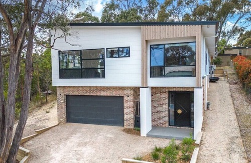Feel right at home in this modern and spacious retreat located in Gisborne, Victoria. Surrounded by beautiful, lush trees, this modern, thoughtfully designed home has four bedrooms (main with ensuite) and two living rooms making it an ideal space for families, larger groups, couples and workers. With enough space for 8 guests, you'll fall in love with the open-plan kitchen, dining and living room, study, separate kids' room and stunning gardens with deck and outdoor furniture.