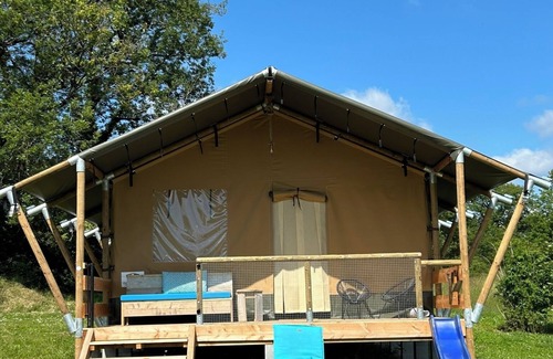 Glamping 'Safarilodge Prestige Tent 14 4 Pers' with Shared Pool, Private Terrace and Wi-Fi | RV Rental in JAYAC