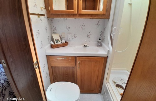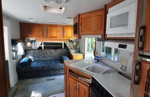 Our camper is tucked away in our back drive, located behind our garage for privacy. There is plenty of parking to accommodate more than 1 vehicle and a boat, utility, or horse trailer. The camper comes equipped with a gas stove/oven, microwave, refrigerator,freezer, heater and air conditioning,running water.