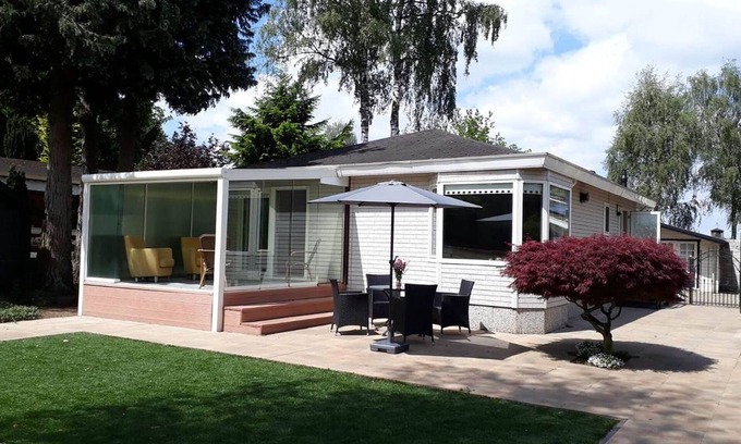 In the peaceful Bospark De Wervelwind in Garderen, this spacious chalet offers a relaxing getaway in the heart of the Veluwe, one of the Netherlands’ most beautiful nature reserves. Surrounded by forest, heathland, and meadows, it's the perfect base for exploring endless walking and cycling trails that wind through shifting landscapes and serene natural beauty. Begin your mornings with birdsong and breakfast on the sun-drenched terrace, or retreat to the glass veranda during cooler weather for a cozy start to the day. The well-maintained garden features multiple seating areas, ideal for reading, dining, or simply unwinding in nature’s embrace. Inside, the chalet offers modern comfort with air conditioning, a fully equipped kitchen, and a warm living space. Practical touches like a washing machine and on-site parking—including an EV charging post at the park entrance—add to the ease of your stay. Families and couples alike will enjoy the calm atmosphere of this small-scale park. For day trips, explore the famous Kröller-Müller Museum—home to an exceptional Van Gogh collection—or climb the nearby Klimbos Garderen treetop adventure park. For younger guests, the Apenheul Primate Park and Julianatoren amusement park are just a short drive away. When it’s time to dine, enjoy fresh local dishes at Brasserie Staverden, fine cuisine at Chez Brochard, or a cozy meal at De Bonte Koe in Garderen itself. Whether you're seeking nature, comfort, or culinary treats, this chalet offers an unforgettable stay in the heart of Guelders.