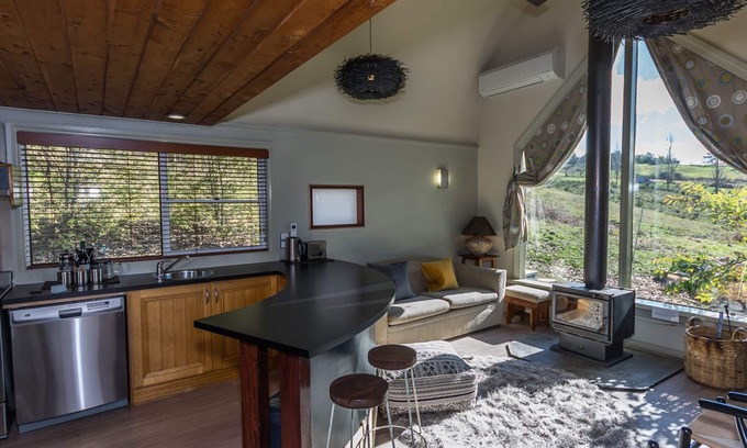 Glasshouse features a cosy lounge/dining/ full kitchen (microwave, dishwasher, full stove, small fridge and all kitchen utensils)