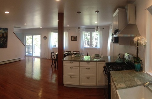 With 3 upstairs bedrooms and 3 full bathrooms the house can easily accommodate up to 6 people. Oak hardwood floors, a large enclosed morning sun porch, new stainless steel appliances, and new mattresses ensure a comfortable stay.