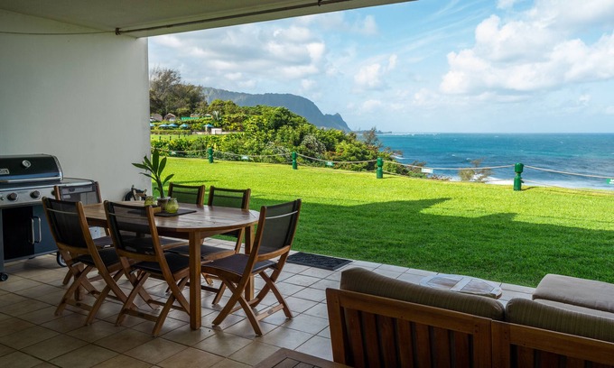 Glorious ocean and Bali Hai views from this ground floor, air conditioned home is located in Princeville. Glorious ocean and Bali Hai views from this ground floor, air conditioned home provides accommodation, featuring Balcony/Terrace, Kitchen, Parking, among other amenities. This Condo features Balcony/Terrace, Kitchen, Parking, to make your stay a comfortable one.
