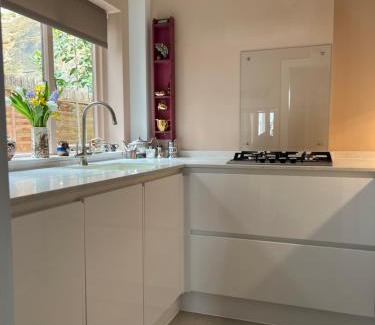 Food & DrinkTea/Coffee makerBathroomBathtub, Conditioner, Bathtub or shower, Free toiletries, Towels, Hairdryer, Guest bathroom, Toilet, Body soap, Shampoo, Toilet paper, ShowerMedia & TechnologyFlat-screen TV, TV, Streaming service (like Netflix)GeneralCarbon monoxide detector, Heating, Iron, Fire extinguisher, Smoke Alarm, Private entranceKitchenWine glasses, Toaster, Stovetop, Refrigerator, Electric kettle, Dryer, Oven, Washing machine, Kitchen, Microwave, Dishwasher, Dining tableLiving AreaDining area, DeskOutdoorsPatio, TerraceViewQuiet street view, View, Garden view, Sea viewBedroomLinensBuilding CharacteristicsSemi-detachedEntertainment & Family ServicesBoard games/puzzles, Books, DVDs or music for childrenCleanliness & disinfectionHand sanitizer |