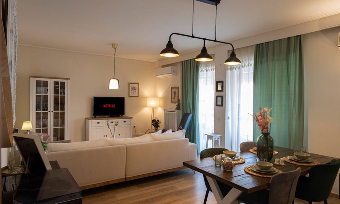 Modern-Classic renovated apartment,4th floor(100sq.meters)with private parking place.Sunny with ideal location.Spacious living room and balcony. Located at Golf of Glyfada,nearby the Athenian riviera "Glyfada".The combination between safety and quiet regarding our neighbourhood makes it a peaceful and convenient place for everyone,located in the South of Athens.Glyfada is a unique place full of plantation and nature.Nearby,someone can easily find supermarkets,cafes,parks and playgrounds or take a walk around the Golf field of Glyfada.Metro station of ELLINIKON is located just 10 minutes away(on foot) from the house."Glyfada city center", one of the best shopping areas of Athens with exceptional restaurants and cafes is just five minutes away( with the local bus).Beach of Astir Glyfadas(Balux)is five minutes away(by car or local bus).Mediterraneo hospital located just two roads away from the house(approx.8 min on foot)