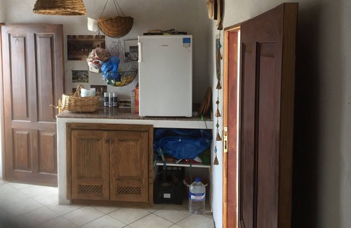 The apartment used to be a goat stable. The old walls have been left and lovingly renovated in the style of the island. This is how a jewelery box was created with a kitchen, living room with a very comfortable folding sofa, bedroom with double bed and bathroom.