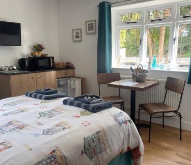 Godden Green B & B Guesthouse is a recently renovated bed and breakfast in Newchurch near Amazon World Zoo Park. This property offers access to a patio, free private parking, and free Wifi. Guests can access the bed and breakfast via private entrance. The bed and breakfast provides guests with a terrace, garden views, a seating area, a flat-screen TV, a fully equipped kitchenette with a microwave and a toaster, and a private bathroom with walk-in shower and a hair dryer. Guests can have wine or champagne, fruit, and chocolates or cookies delivered to their room. At the bed and breakfast, units are equipped with bed linen and towels. Blackgang Chine is 8.8 miles from Godden Green B & B Guesthouse, while Osborne House is 10 miles from the property. Southampton Airport is 36 miles away.