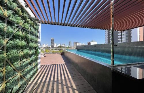 GOLD, Apartamento nuevo de 2 ambientes en Equipetrol cerca del Zoológico is located in Santa Cruz de la Sierra, just 1.1 miles from Gabriel Rene Moreno Autonomous University and 1.6 miles from Arenal Park. This property offers a rooftop pool, free Wifi, and free private parking. The accommodation offers an elevator, full-day security, and currency exchange for guests. The air-conditioned apartment consists of 1 separate bedroom, 1 bathroom with a hair dryer and free toiletries, and a seating area. There is a dining area and a kitchen complete with a microwave, a fridge, and a stovetop. Additional in-room amenities include wine or champagne. A mini-market is available at the apartment. Guests can also relax on the sun terrace. 24th of September Metropolitan Plaza is 2 miles from the apartment, while Sacred Art Museum is 2.2 miles away. Viru Viru International Airport is 8.7 miles from the property.