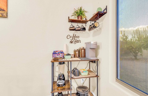 Enjoy easy access to both the Superstition Mountains and Phoenix at this 3-bed, 2-bath Gold Canyon vacation rental! Perfect for families or groups of friends, this home features 3 flat-screen TVs, a fully equipped kitchen, and a lovely outdoor oasis to relax in following your well-spent days. Get outside and hit the links at Mountain Brook Golf Course or hike the Hieroglyphic Trail! Afterward, cool off with a dip in either pool, then grab your favorite drink and gather around the gas fire pit.