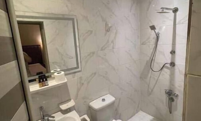Experience luxury in a historic hotel in Downtown Alexandria, just 2 minutes from the sea. This elegant room features three comfortable beds, a private bathroom, kettle, TV, and mini fridge. Enjoy complimentary daily cleaning, 24-hour professional service, and a welcoming reception. Explore nearby attractions like the Citadel of Qaitbay, Library of Alexandria, and more. Additional services include shuttle and car options, with breakfast and meals available at extra cost.