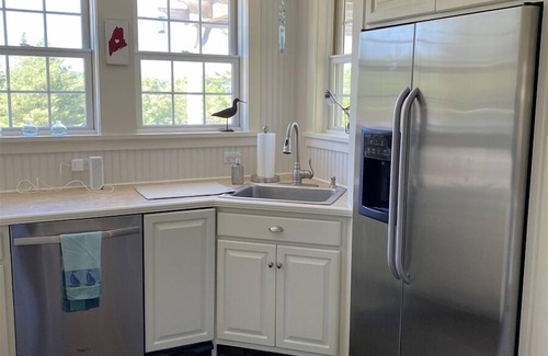Outside there is a comfortable back deck to watch the sunset after a day of exploring the lighthouse and/or many public beaches within a mile of the house.