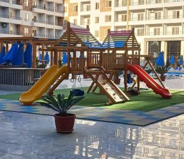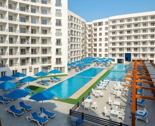 Offering a bar, Golden tiba resort provides accommodations in Hurghada. Among the facilities of this property are a restaurant, an elevator, and daily room service, along with free Wifi throughout the property. Jungle Aqua Park is 3.6 miles away, and Sand City Hurghada is 4.5 miles from the apartment. The apartment provides guests with a terrace, pool views, a seating area, a flat-screen TV, a fully equipped kitchen with an oven and a fridge, and a private bathroom with bidet. All units come with air conditioning, and some units at the apartment complex have a balcony. At the apartment complex, the units include bed linen and towels. For guests with children, Golden tiba resort offers a children's playground. The accommodation conveniently has both an outdoor pool and a private beach area. New Marina is 9.4 miles from Golden tiba resort, while Hurghada Grand Aquarium is 2.8 miles from the property. Hurghada International Airport is 3.7 miles away.