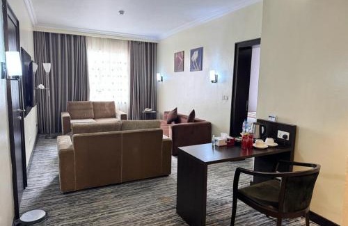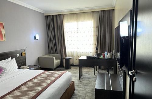 Located in Ibadan, 11 miles from IITA Forest Reserve, Golden Tulip Ibadan has accommodations with an outdoor swimming pool, free private parking, a terrace and a restaurant. With free WiFi, this 4-star hotel offers room service and a 24-hour front desk. Guests can use a bar. The hotel will provide guests with air-conditioned rooms offering a desk, an electric tea pot, a minibar, a safety deposit box, a flat-screen TV and a private bathroom with a bidet. The rooms have a closet. Ibadan Airport is 8.7 miles from the property.