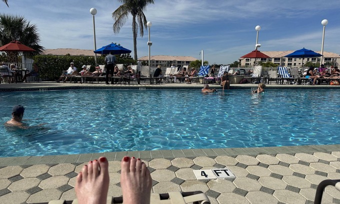 We are steps away from the Clubhouse, golf course, Tennis courts, main pool and hot tub, bocce courts and fine restaurants! Golf privileges can be transferred for a fee. There are so many activities and options including the 18 hole Championship Golf Course, 12 lit tennis courts, access to 3 pools, fitness center with 7 classes of all kinds every day, bocce ball, library, computer room. The Tiki Club is on the 5 acre lake with an Olympic sized swimming pool and large hot tub, a sand beach, fitness center, bar and a one mile walking/jogging track around the lake. There are many lakes and ponds and beautiful landscaping everywhere!