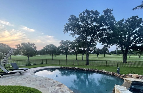 Located on OakMont Country Club (Club Corp). This house has it all. Great views with a pool and hot tub. Located minutes away from downtown Denton and a stones throw from I-35. This house has everything you need for your family to relax