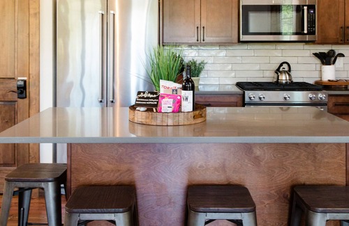 We know vacationers love to have one giant space that can accommodate the entire group! The great room with vaulted ceilings and open layout alongside the dining table and kitchen are ideal for making meals, playing board games or streaming the big game.