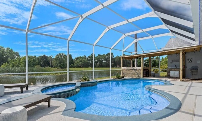 Welcome to Sol Haven! Venture into the Orlando area where you have big city adventures nearby and can relax on the back porch, around the pool with a glass of wine. Sensational sunrise views from the southeast-facing pool, spa and lanai overlooking fairway #3 and one of many White Heron Golf Club ponds. Modern new furnishings throughout. Melt into the comfortable beds and fall asleep to the sounds of crickets chirping and bull frogs.