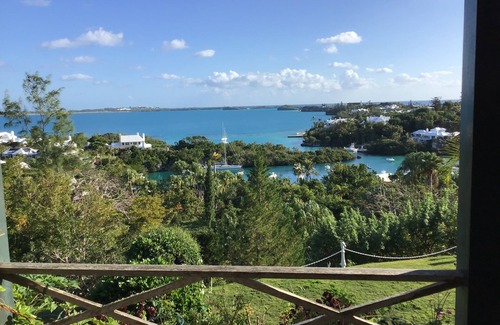 2 bed 2 1/2 bath home on one Storey offering all mod cons but with spectacular views over Castle Harbour Sound, just 3 minutes walk to the Mid-Ocean golf clubhouse and 15 minutes walk to Rosewood Tuckers Point hotel and golf course. Available for a 9 month lease from September to May in each year, or any period no less than one calendar month. The home will be owner occupied for the months of June, July and August. Seasonal fruits available in the garden. 5 minutes walk to the nearest beach. Guests will love the panoramic view over the Castle Harbour Sound and the outlying islands. For those who like to exercise there are lovely walks from the house. For Mid-Ocean Golf Club international members the house sits between the 16th and 17th fairways and there is a members' beach and dining room and beach restaurant within a 5 to 8 minute walk. Tuckers Point Golf course is within walking distance and enquiries can be made there for a seasonal membership. Your hostess speaks English, French, German and Spanish. The use of a car is included in the rent. No pets allowed and there is none on the property.